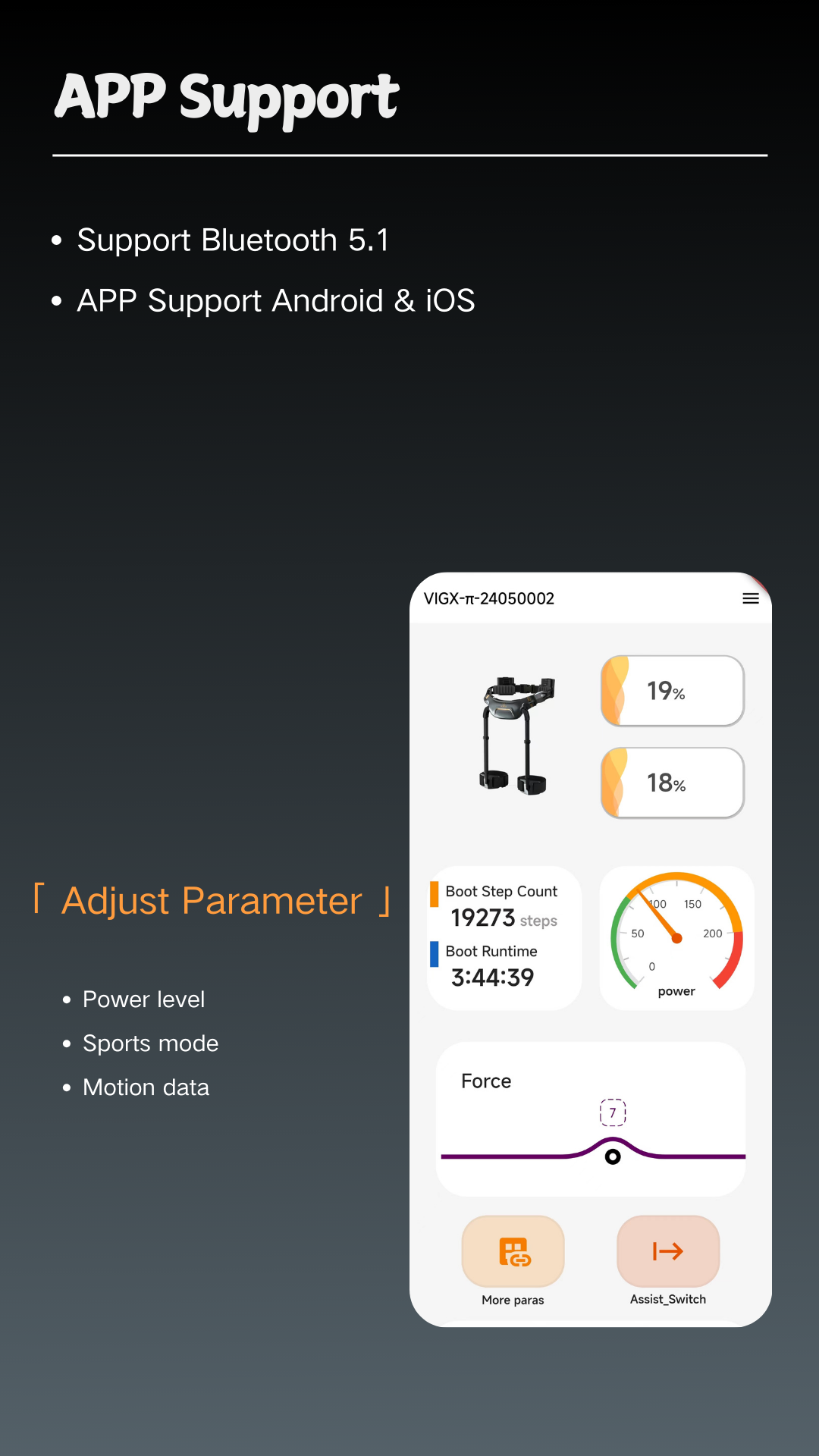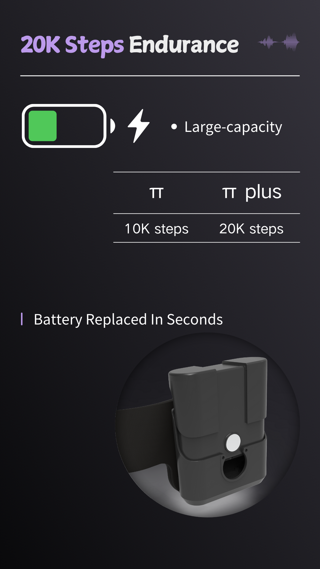10 کیلومتر قدم استقامت - مجهز به باتری لیتیومی بادوام، از 10000 قدم پشتیبانی بیوقفه لذت ببرید (ایدهآل برای پیادهروی در سربالایی یا بالا رفتن از پلهها!). تنها در 1.5 ساعت به طور کامل شارژ کنید! به علاوه، هوش مصنوعی با سرعت و زمین شما سازگار میشود، بنابراین 15٪ انرژی در پلهها و 30٪ خستگی در پیادهرویهای طولانی صرفهجویی میکنید.